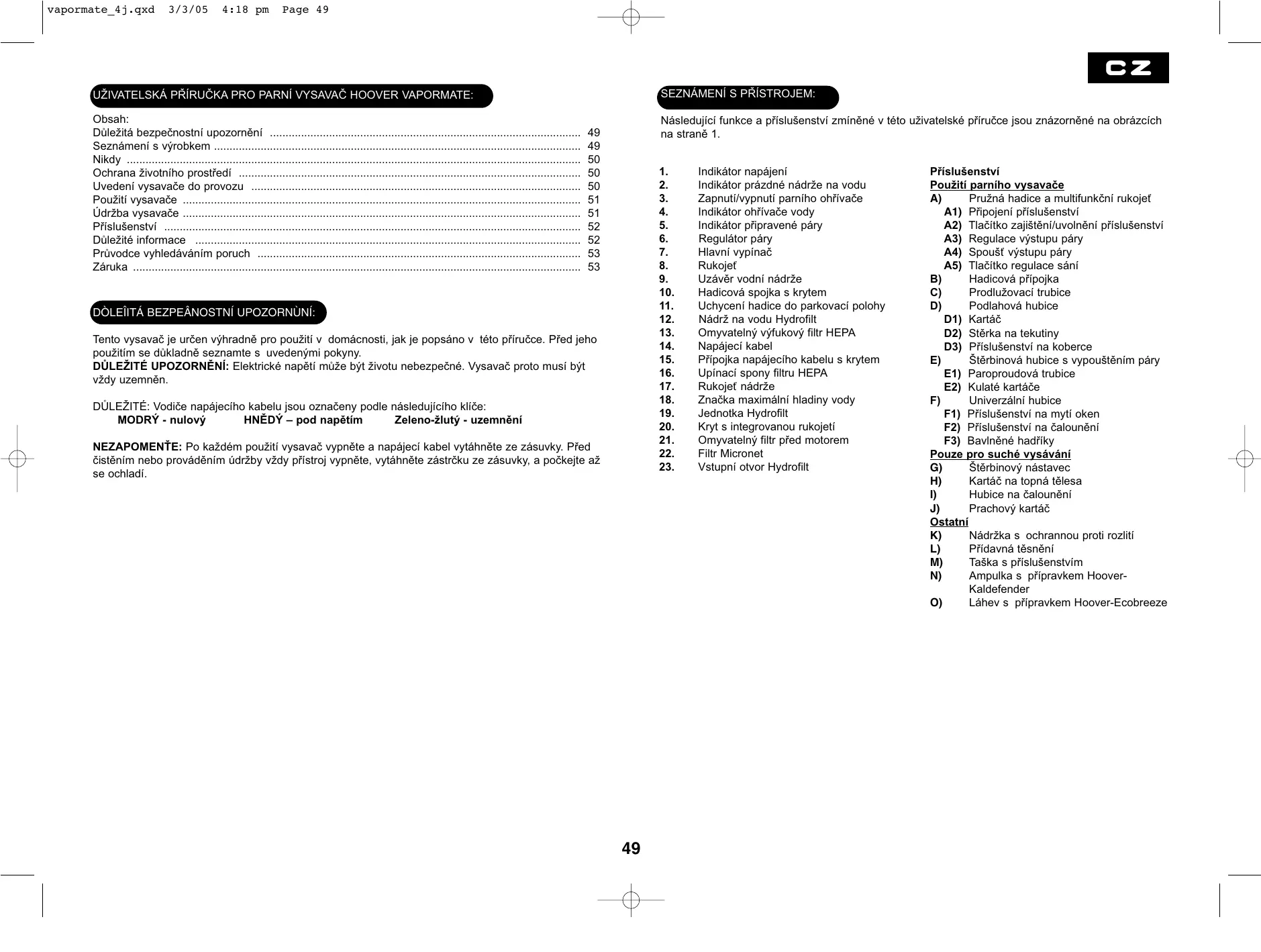 VAPORMATE - Parní čistič HOOVER - Bezplatný návod k obsluze