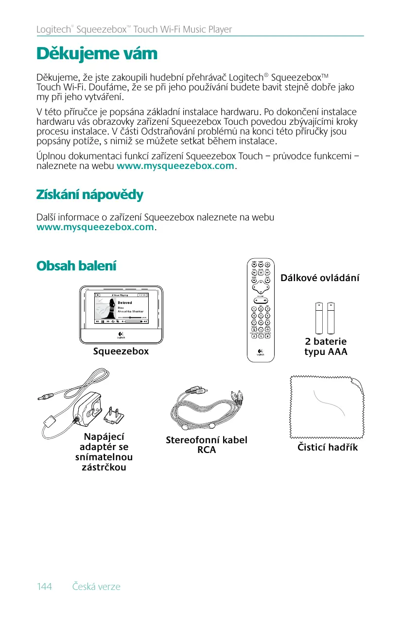 NÁVOD K OBSLUZE SQUEEZEBOX TOUCH LOGITECH