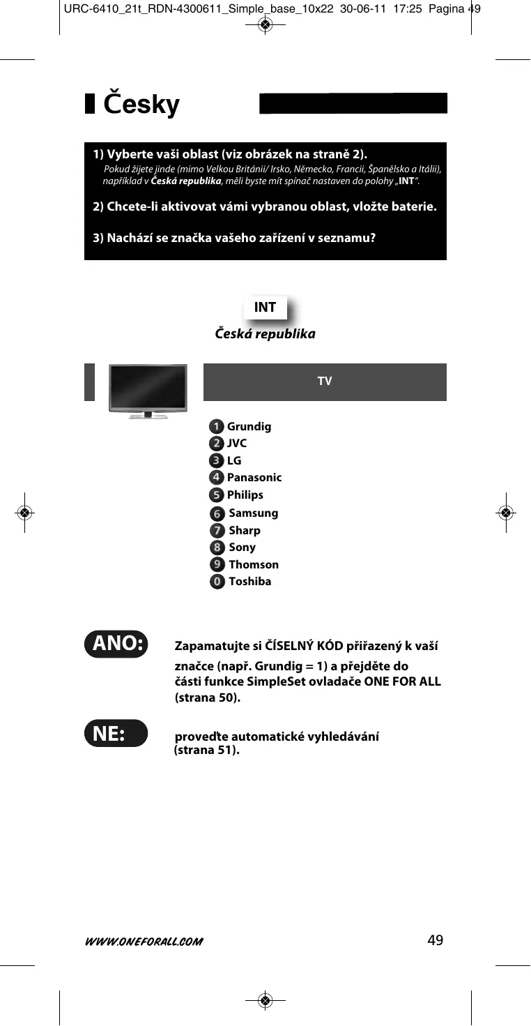 URC-6410 - Univerzální dálkový ovladač ONEFORALL - Notice d'utilisation et mode d'emploi gratuit