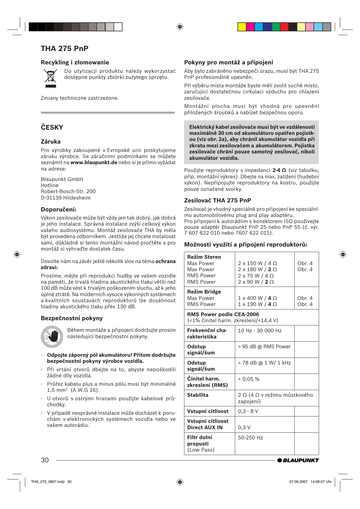 Téléchargez la notice de votre Auto zesilovač au format PDF gratuitement ! Retrouvez votre notice THA 275 PNP - BLAUPUNKT et reprennez votre appareil électronique en main. Sur cette page sont publiés tous les documents nécessaires à l'utilisation de votre appareil THA 275 PNP de la marque BLAUPUNKT.