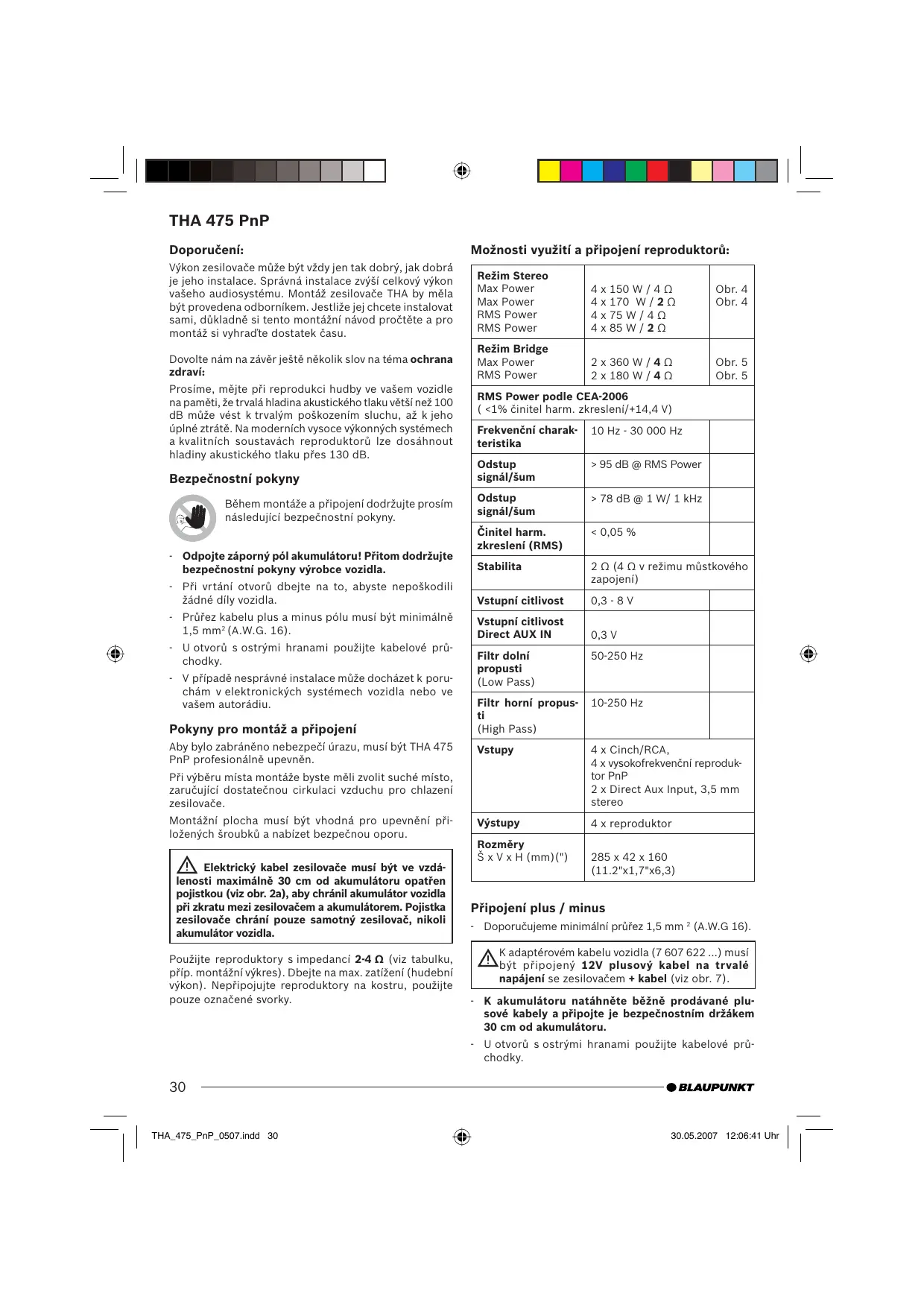 Téléchargez la notice de votre Výkonový zesilovač au format PDF gratuitement ! Retrouvez votre notice THA 475 PNP - BLAUPUNKT et reprennez votre appareil électronique en main. Sur cette page sont publiés tous les documents nécessaires à l'utilisation de votre appareil THA 475 PNP de la marque BLAUPUNKT.