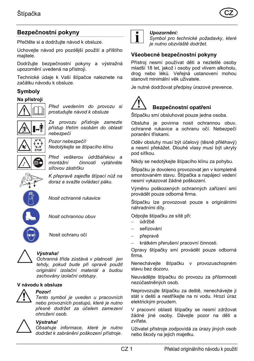 Pe aparat Înainte de punerea în funcţiune, se vor citi instrucţiunile de utilizare întreţinere şi montaj, se scoate fişa de reţea Pentru transport, se deplasează cuţitului de despicare complet în jos şi se leagă între ele manetele de operare. Se vor purta mânuşi de protecţie Se va purta protecţie