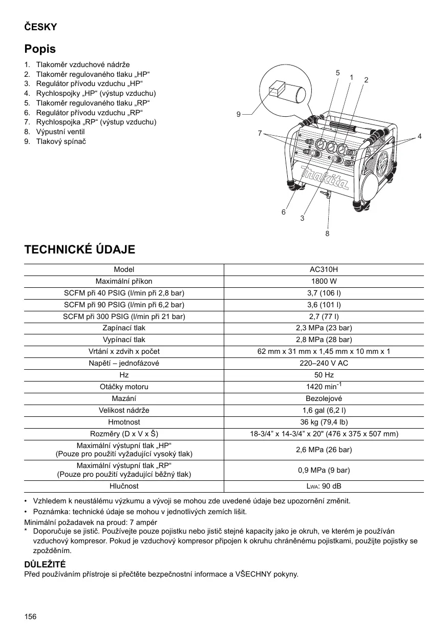 AC310H - Kompresor MAKITA - Bezplatný návod k obsluze