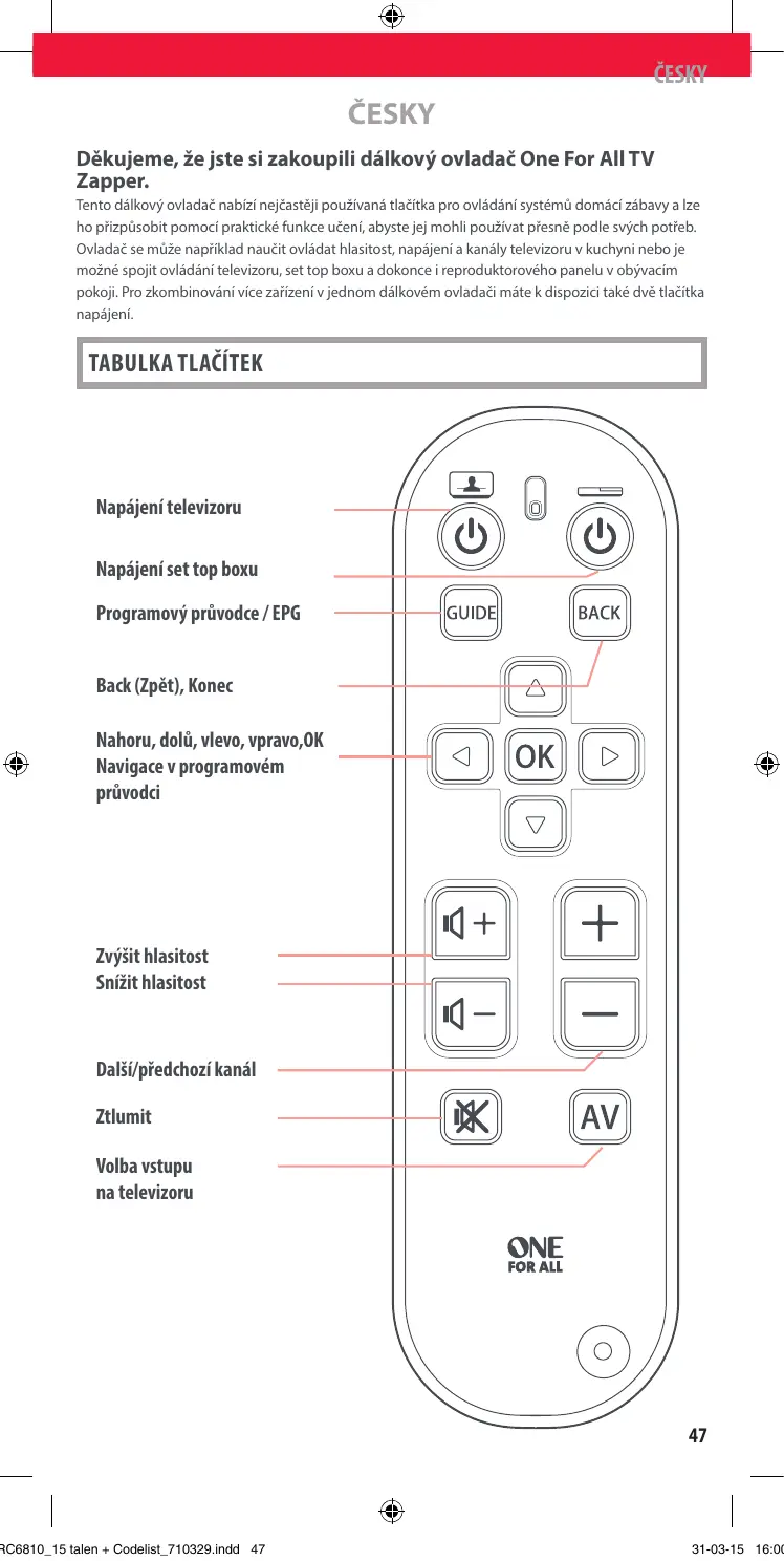 NÁVOD K OBSLUZE URC6810 ONE FOR ALL