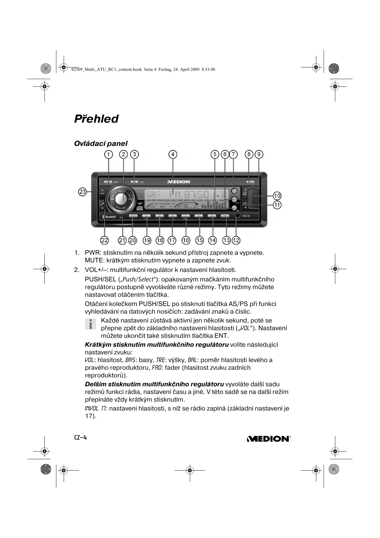MD 82309 - Autorádio MEDION - Bezplatný návod k obsluze