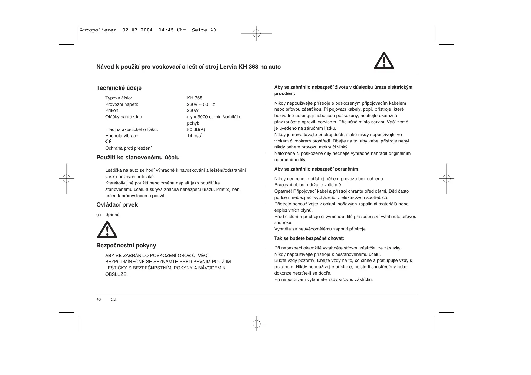 NÁVOD K OBSLUZE KH 368 LERVIA