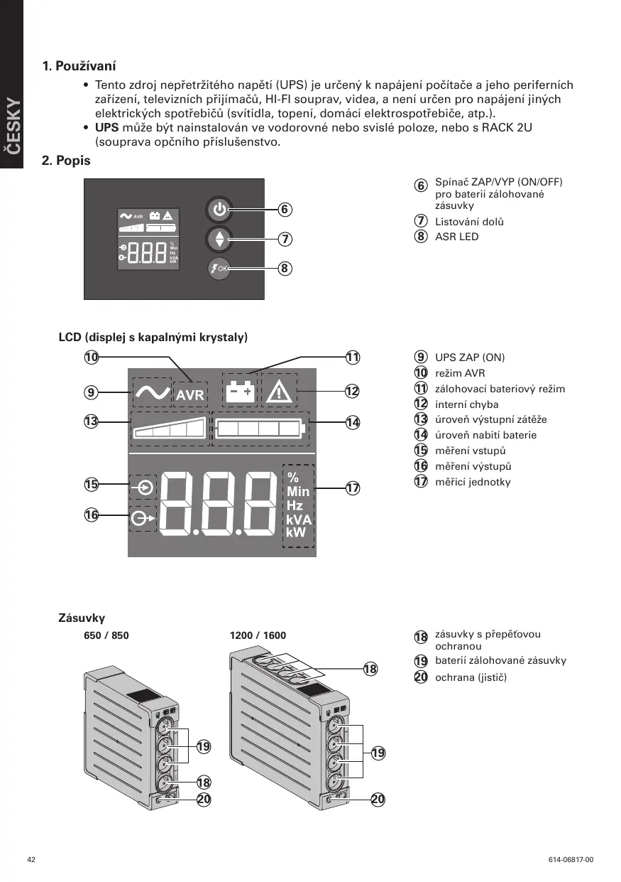 2. Opis 6 Vypínač zásuviek chránených záložnou batériou