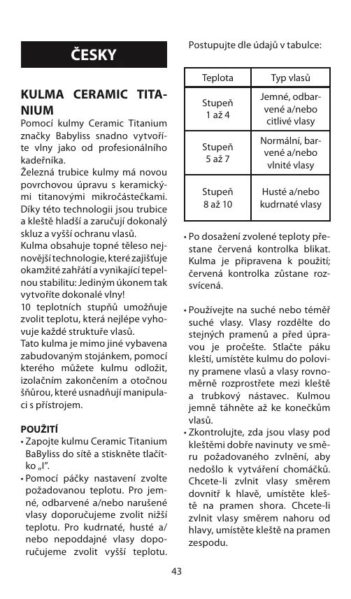2332E - Přístroje na úpravu vlasů BABYLISS - Notice d'utilisation et mode d'emploi gratuit