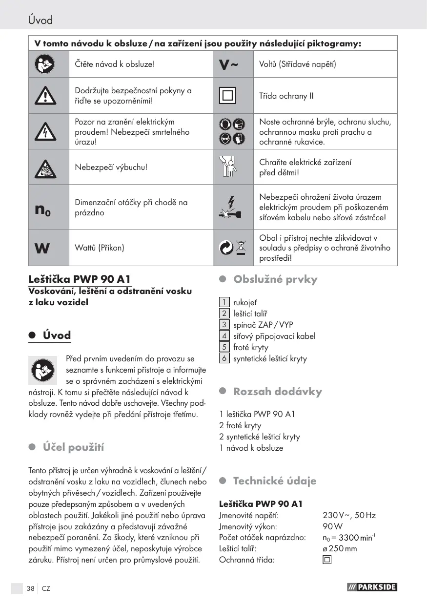 NÁVOD K OBSLUZE PWP 90 A1 POLISHING MACHINE PARKSIDE