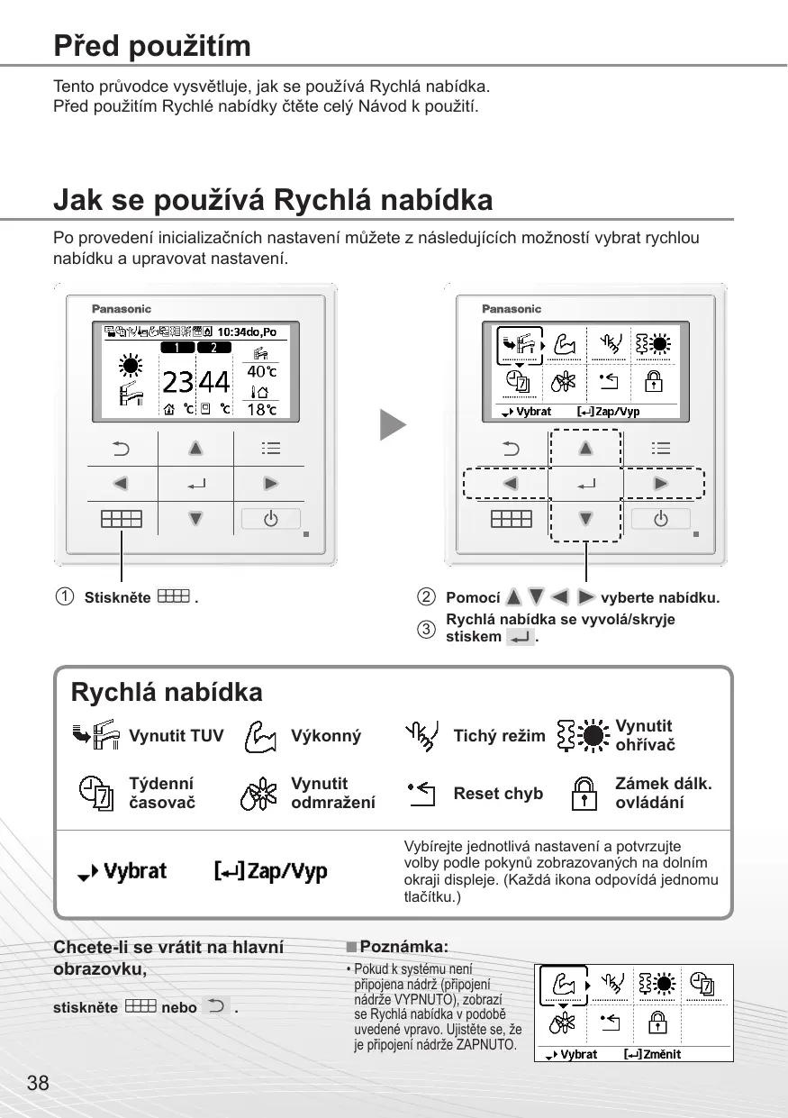 Před použitím Rychlé nabídky Čtěte celý Návod k použití.