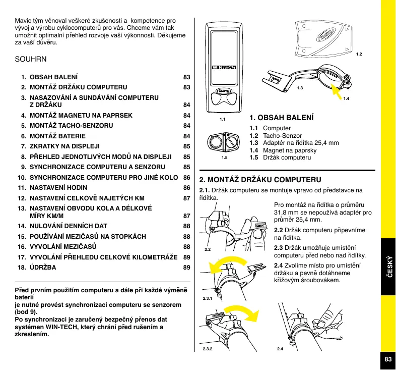 WINTECH ULTIMATE - Počítač na kolo MAVIC - Bezplatný návod k obsluze