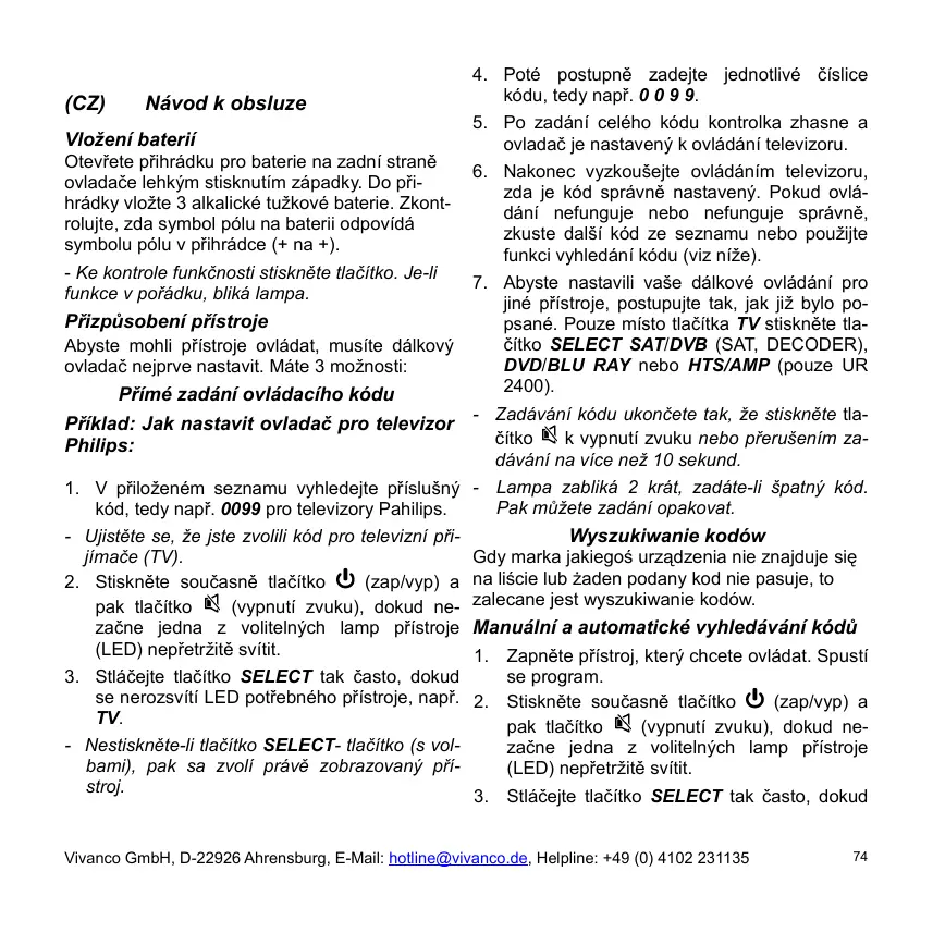 NÁVOD K OBSLUZE UR 2400 VIVANCO