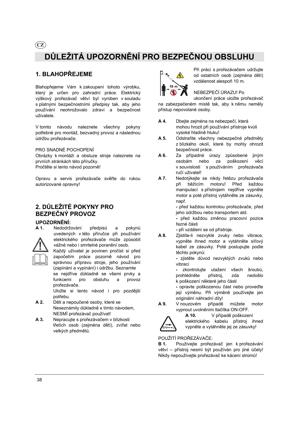 Toute personne qui utilise la PERCHE D'ÉLAGAGE doit au préalable lire attentivement la notice pour une bonne préparation, une utilisation correcte (mise en marche et arrêt) et un entretien correct de l'appareil. Se familiariser complètement avec les commandes pour un usage correct de l'appareil. Conserver la présente notice pour toute consultation future. A 2. Interdire l'utilisation de la PERCHE D'ÉLAGAGE aux enfants et aux personnes ne connaissant pas parfaitement les présentes instructions.