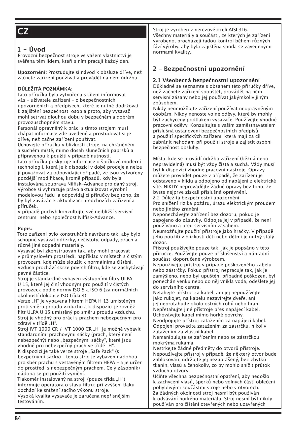 NÁVOD K OBSLUZE IVT1000CR NILFISK