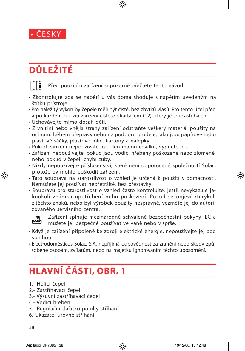CP7385 - Elektrický holicí strojek SOLAC - Bezplatný návod k obsluze