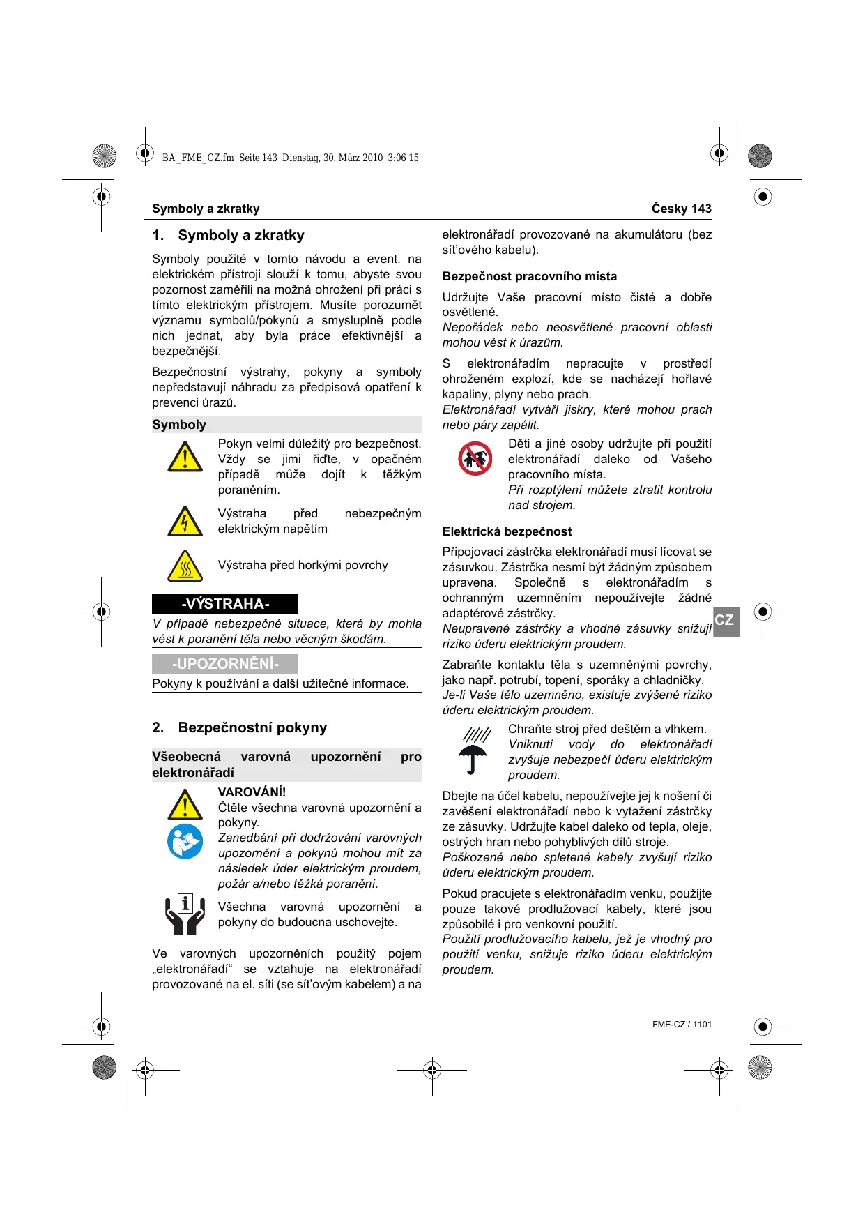 BA_FME_CZ.fm Seite 143 Dienstag, 30. März 2010 3:06 15 Původním návodem k používání “Frézka a bruska“ Symboly a zkratky Česky 143