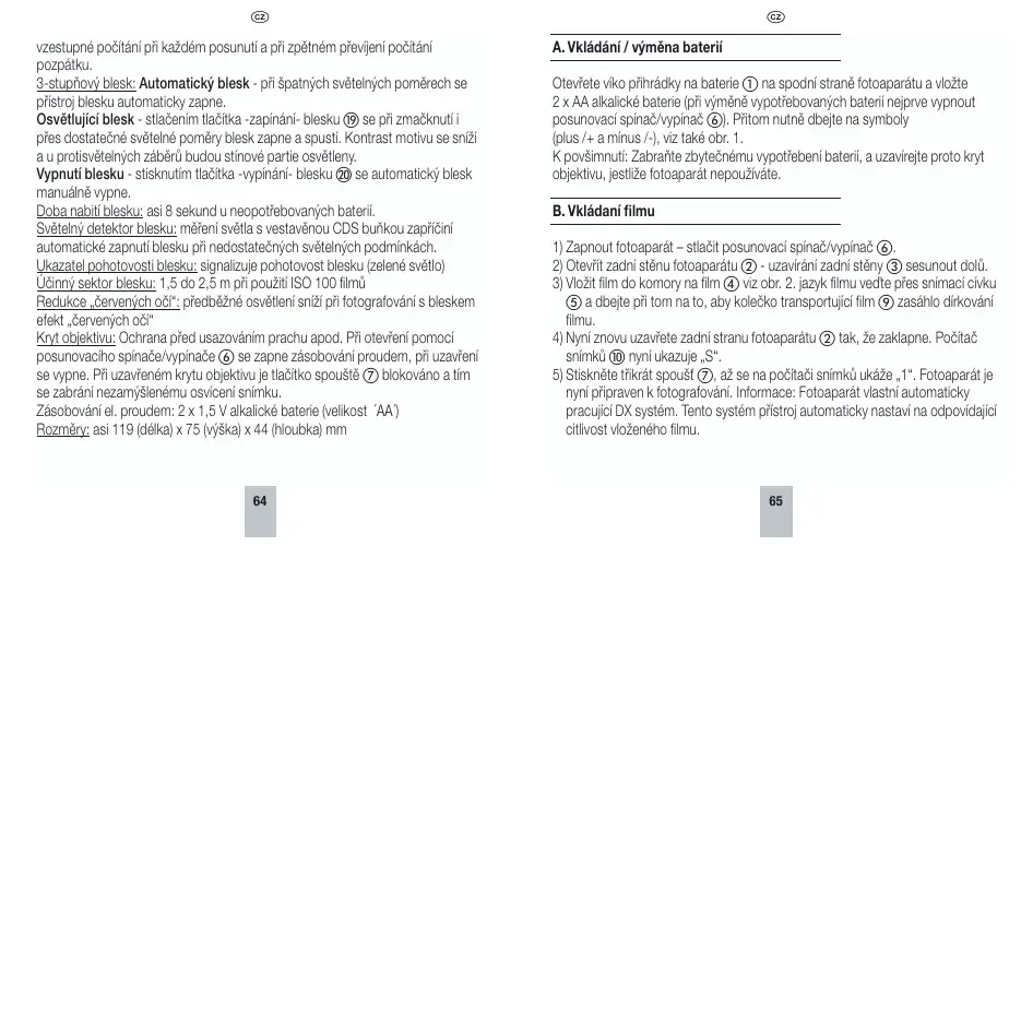 Pozor: Zadni stenu Fotoaparatu (2) otevirejte vždy teprve, až když je film uplne prvinuty zpět.
