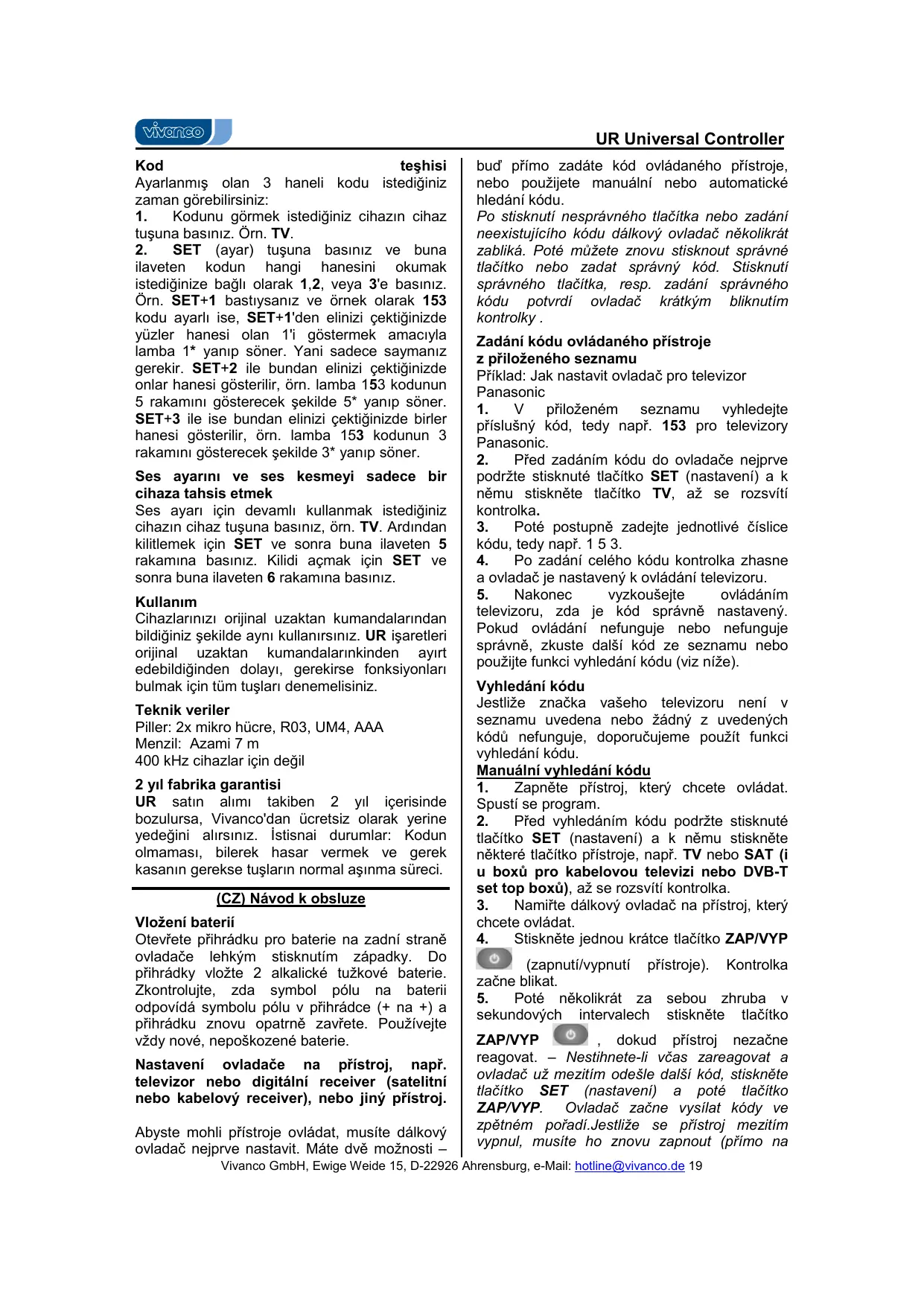 NÁVOD K OBSLUZE UNIVERSAL 8 IN 1 REMOTE CONTROL VIVANCO