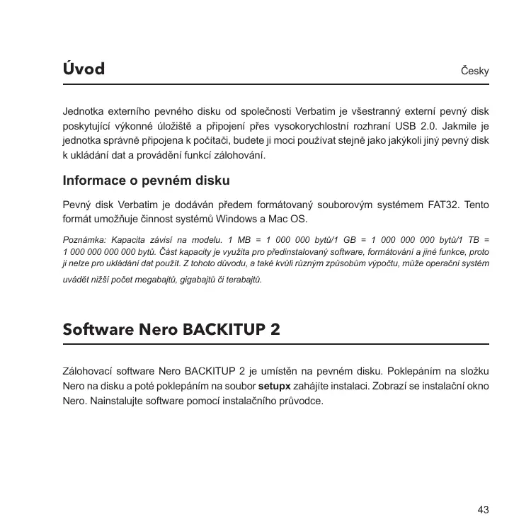 NÁVOD K OBSLUZE EXTERNAL HARD DRIVE USB 2.0 VERBATIM