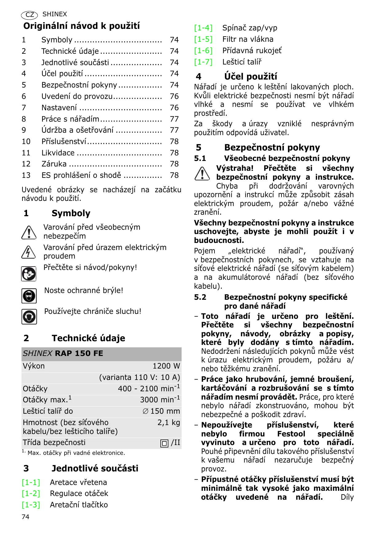 NÁVOD K OBSLUZE SHINEX RAP 150 FE FESTOOL