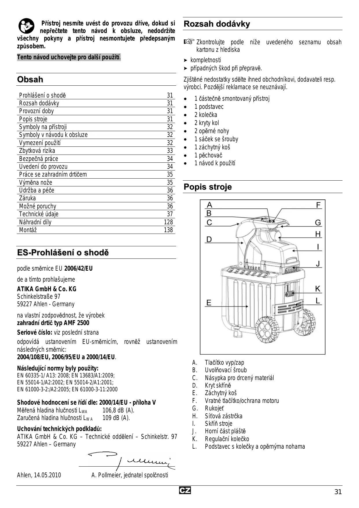 2300 W - Zahradní drtič ATIKA - Bezplatný návod k obsluze