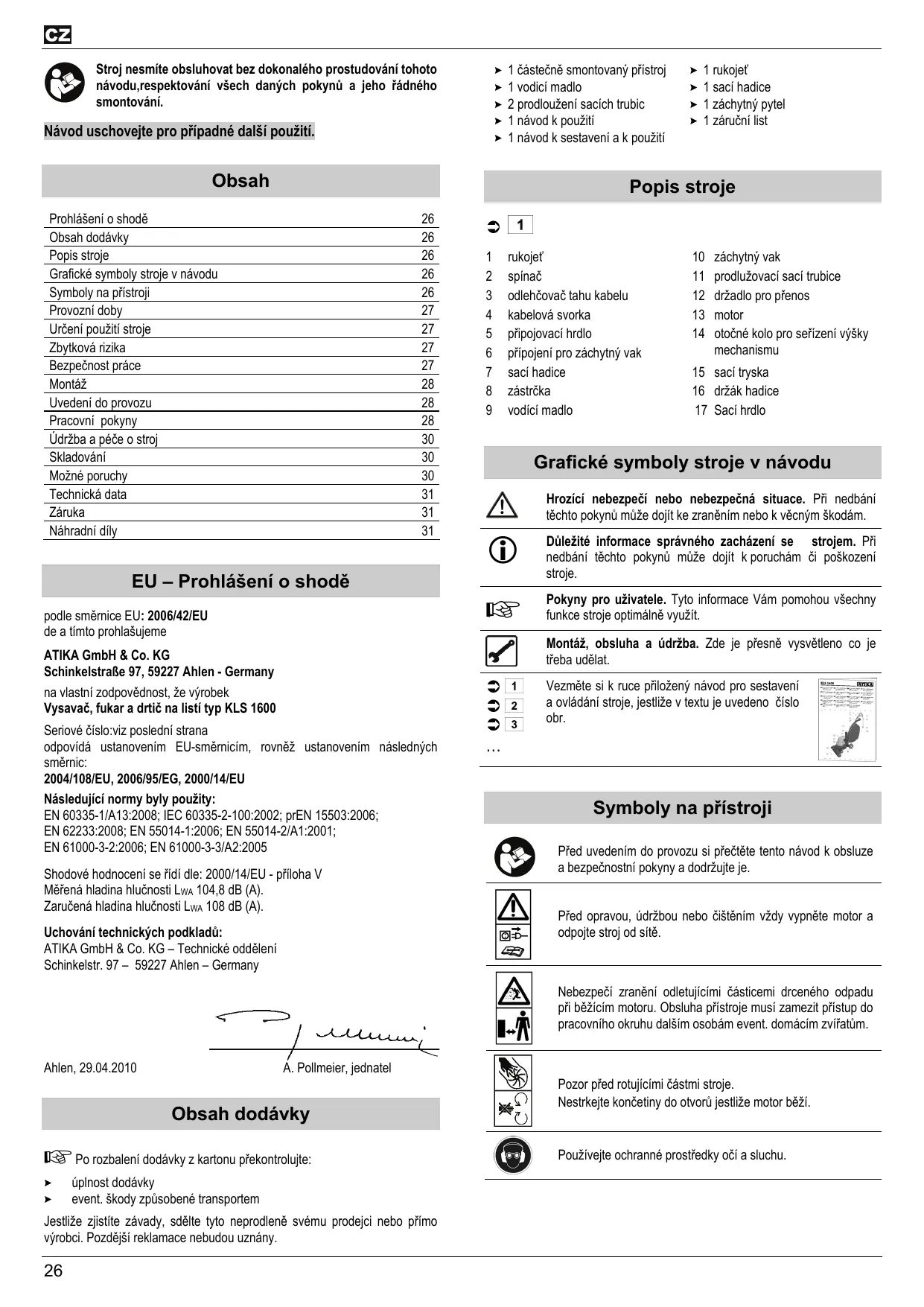 Najděte návod k zařízení zdarma KLS 1600 ATIKA ve formátu PDF.