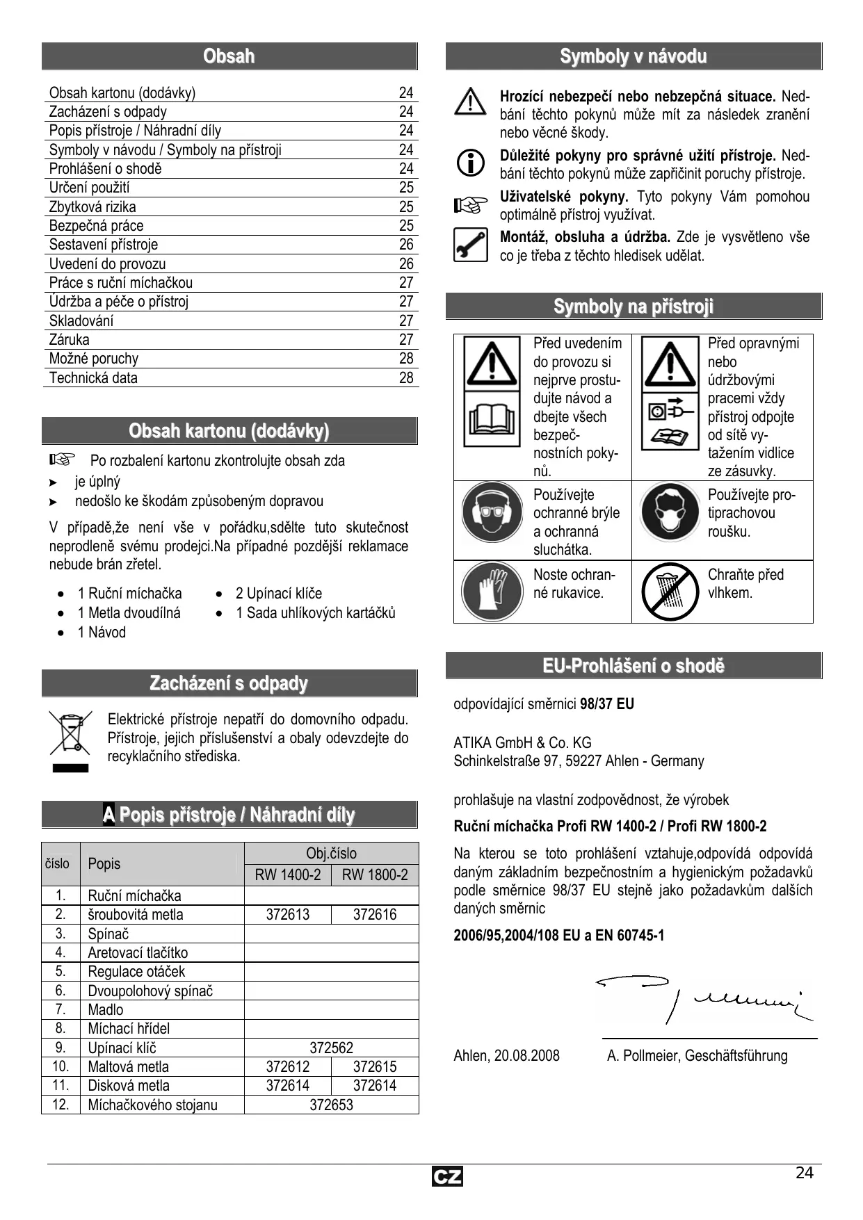 Retrouvez gratuitement la notice de l'appareil PROFI 1800-2 ATIKA au format PDF.