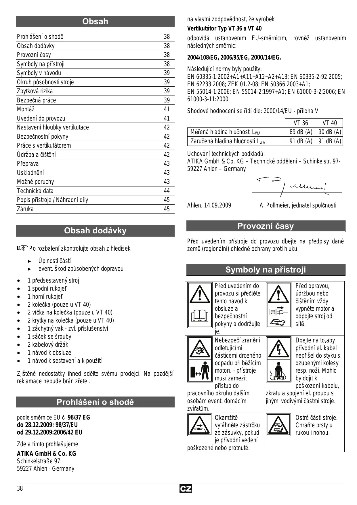 od 29.12.2009:2006/42 EU Zde a tímto prohlašujeme ATIKA GmbH & Co. KG Schinkelstraße 97 59227 Ahlen - Germany 38