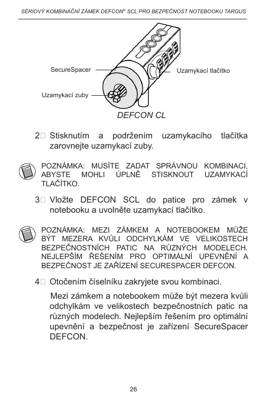 ATENŢIE: NU ÎNCERCAŢI SĂ DESCHIDEŢI SISTEMUL DEFCON SCL FĂRĂ SĂ FOLOSIŢI COMBINAŢIA DE CIFRE. ÎN CAZ CONTRAT, COMPUTERUL SE VA DEFECTA.