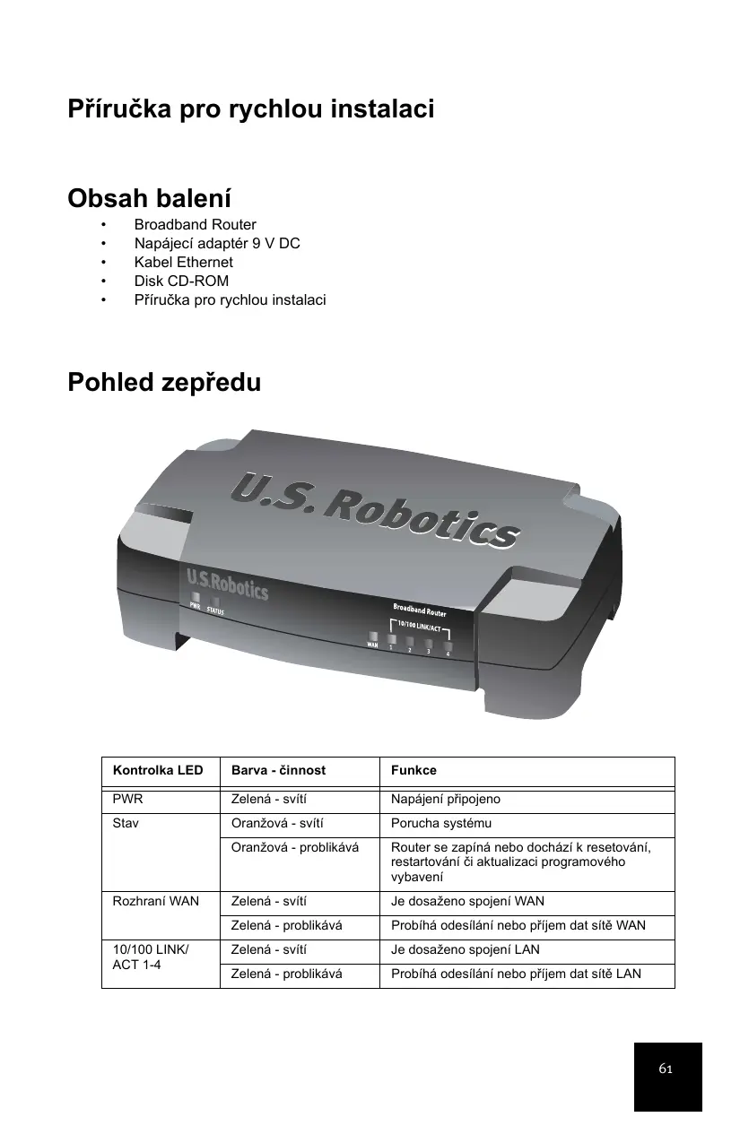 NÁVOD K OBSLUZE BROADBAND ROUTER US ROBOTICS