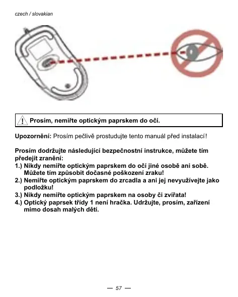 3.) Nikdy nemiǐrte optickým paprskem na osoby Či zviřata!