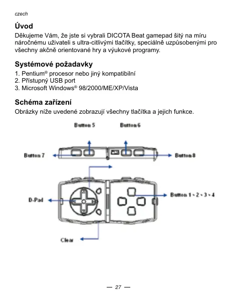 Dekujemé Vám, zě jeste si vybrali DICOTA Beat gamepad šity na miRU náročnému uživatels ulstra-citílvymi tlačítky, spečiáné uzpúsubenými pro vsechny akné orientovaně hydr a vykové programme.