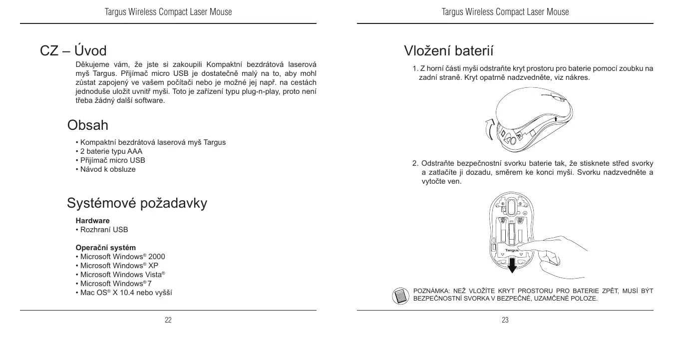 NÁVOD K OBSLUZE WIRELESS COMPACT LASER MOUSE TARGUS