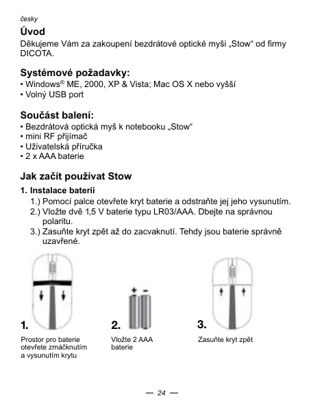 Dekujeme Vam za zakuponi bezdratové optické myši „Stow" od firmy DICOTA.