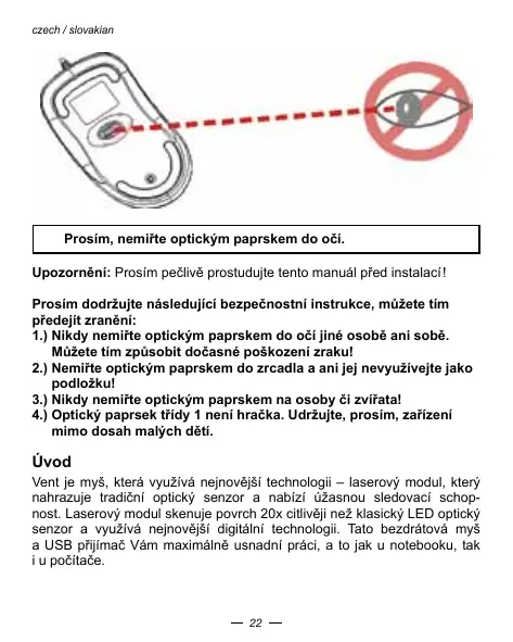 - Tato mys nema zdne dalsi socasti (prijima, mys a kabel). Pouztim jinych dlu cjineho postupu, ne je uveden v manuali, muzete zpuosbit nebepezci cj zraneni.