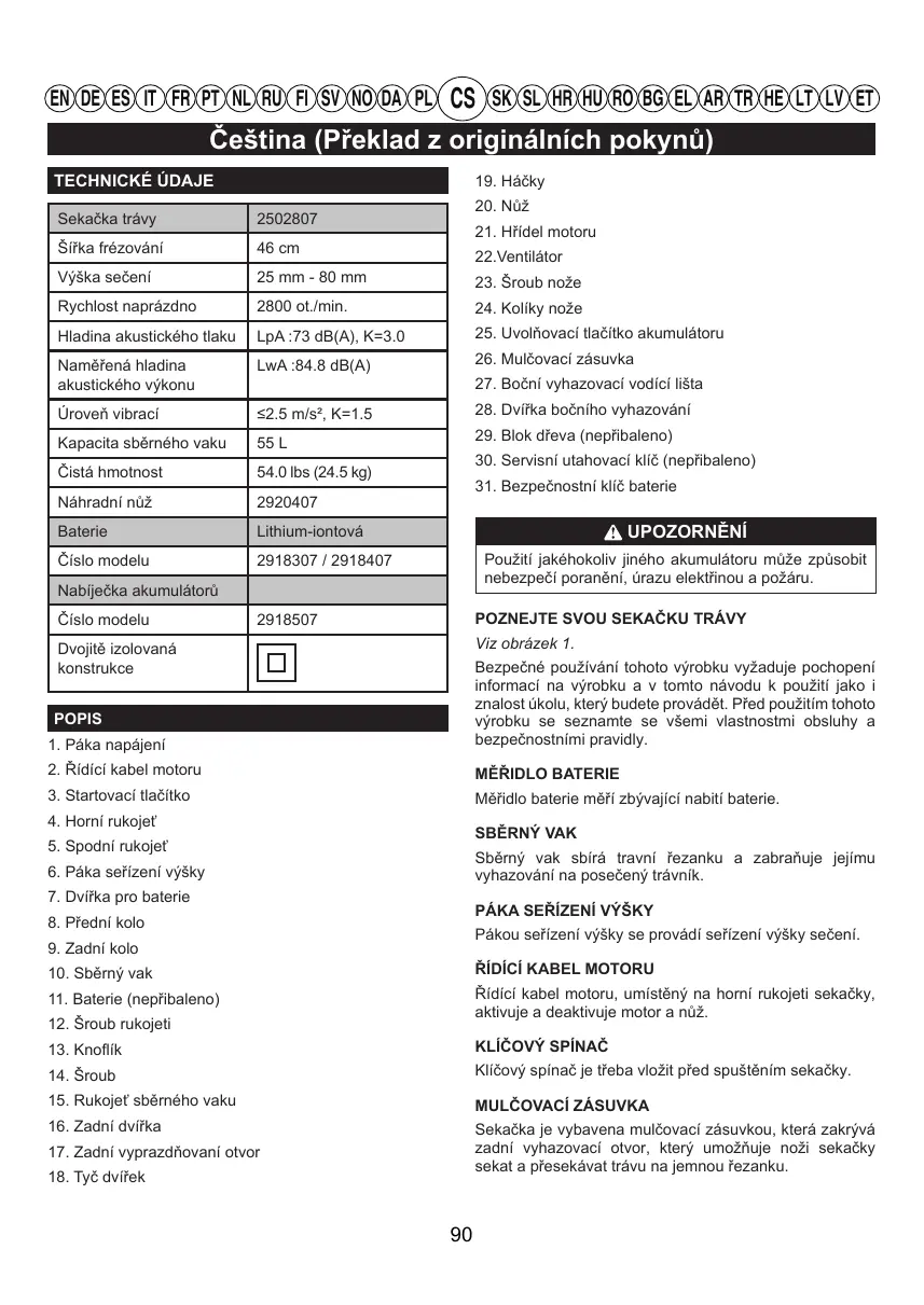 NÁVOD K OBSLUZE 2500207UC - 2500407UC - 2504707UA - G-MAX 2500207 GREENWORKS