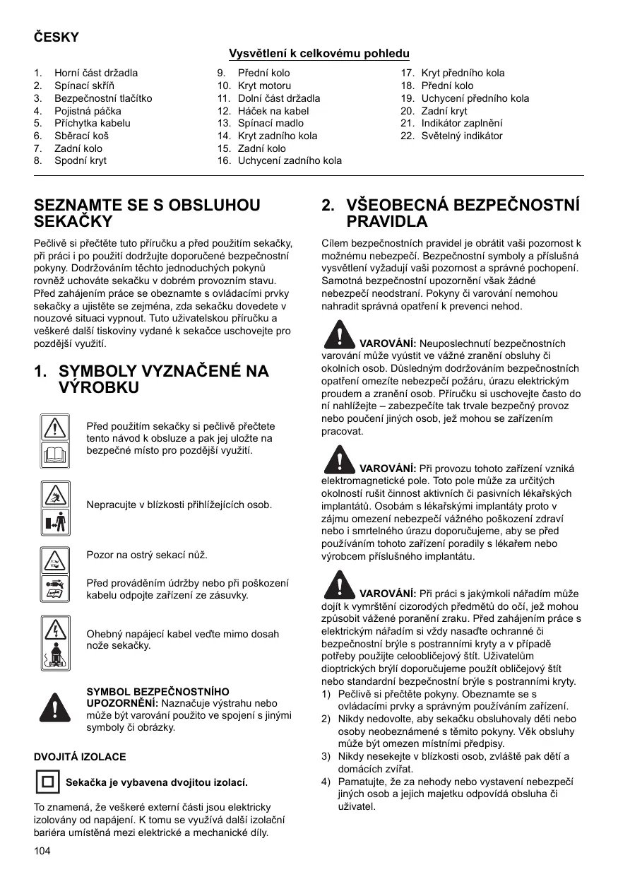 1. SYMBOLES MARQUÉS SUR LE PRODUIT Lisez ce manuel d’instructions attentivement avant d’utiliser la tondeuse et conservez-le dans un endroit sûr pour toute référence future.