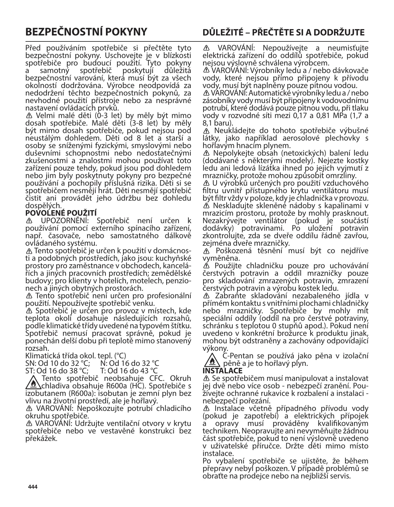 SN : De 10 à 32 °C; N : De 16 à 32 °C ST : De 16 à 38 °C; T : De 16 à 43 °C Cet appareil ne contient pas de CFC. Le circuit de ce réfrigérateur contient du R600a (HC).