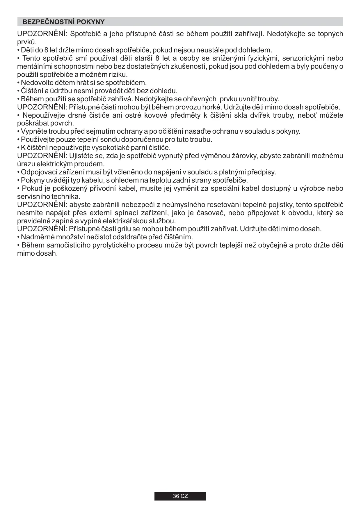 La rejilla puede sostener moldes y bandejas. La instalación tiene que disponer de los fusibles correspondientes y los cables han de tener un cruce de sección de largo suficiente como para alimentar eléctricamente el horno.