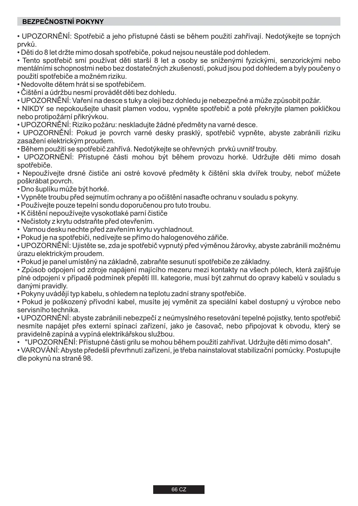 Děti do 8 let držte mimo dosah spotřebiče,Pokud nejsou neustále pod dohledem. - Tento spotbreic smí používat déti starśi 8 let a osoby se sníżenymi fyzickymi, senzorickymi nebo mentalnímì schopnostmi nebo bez dostatečných zkušeností,Pokud jsou pod dohledem a byly poučeny o použití spotbreicá možnérn riziku.
