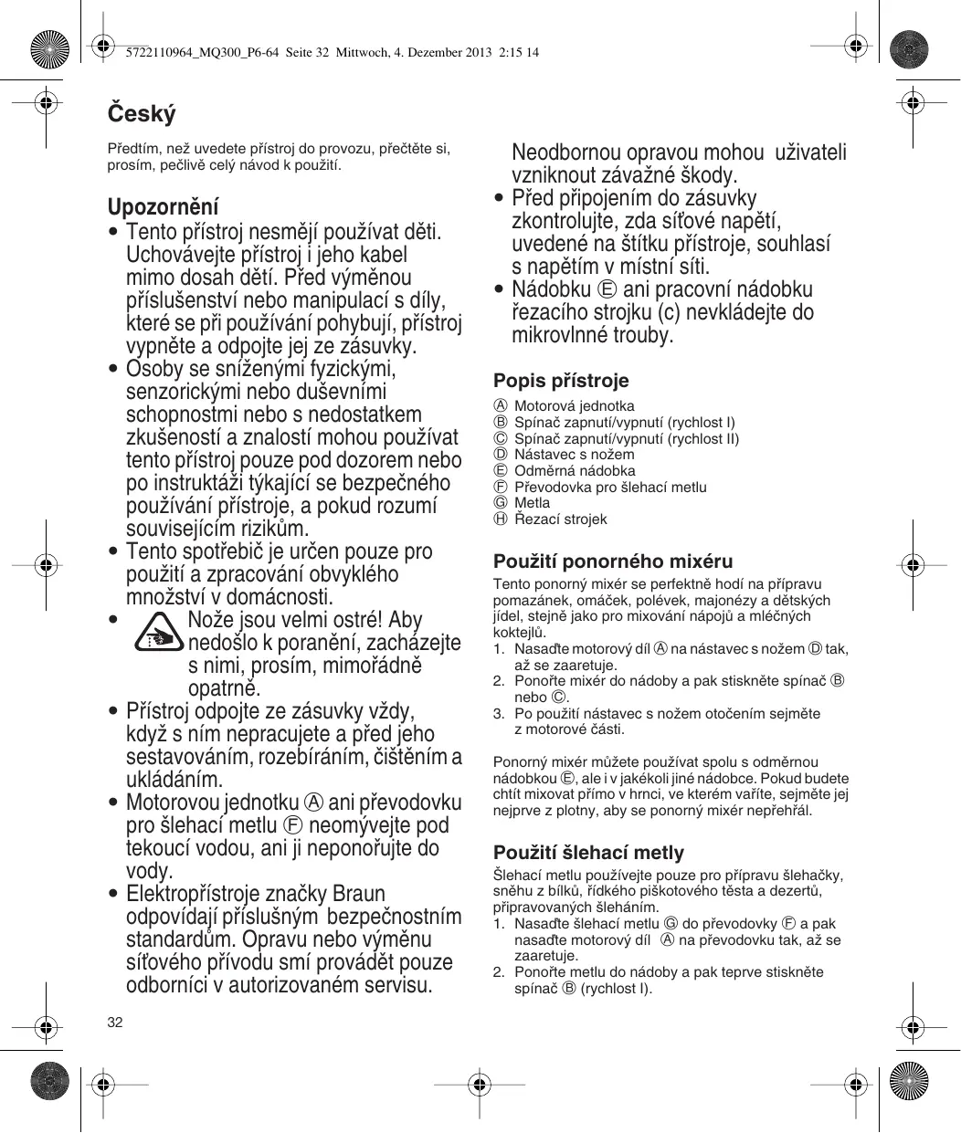 Téléchargez la notice de votre Tyčový mixér au format PDF gratuitement ! Retrouvez votre notice MQ745 COCKTAIL - BRAUN et reprennez votre appareil électronique en main. Sur cette page sont publiés tous les documents nécessaires à l'utilisation de votre appareil MQ745 COCKTAIL de la marque BRAUN.