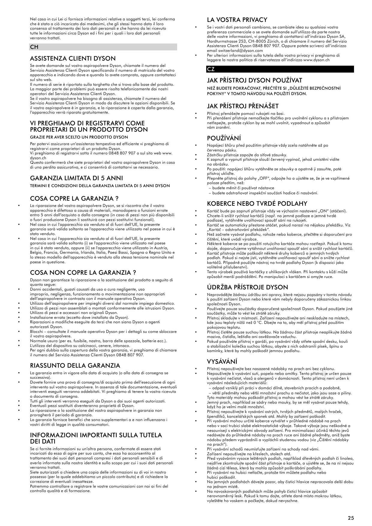 ASSISTENZA CLIENTI DYSON GRAZIE PER AVER SCELTO UN APPARECCHIO DYSON Dopo aver registrato la garanzia di 5 anni, le parti e la manodopera del vostro apparecchio