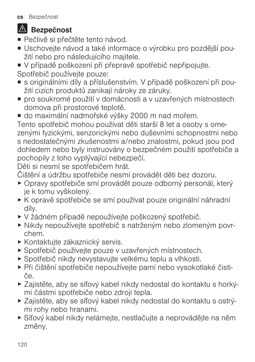 Opravy spotřebače smí provádet pouze odborny personal, který je k tomu vyškolený.