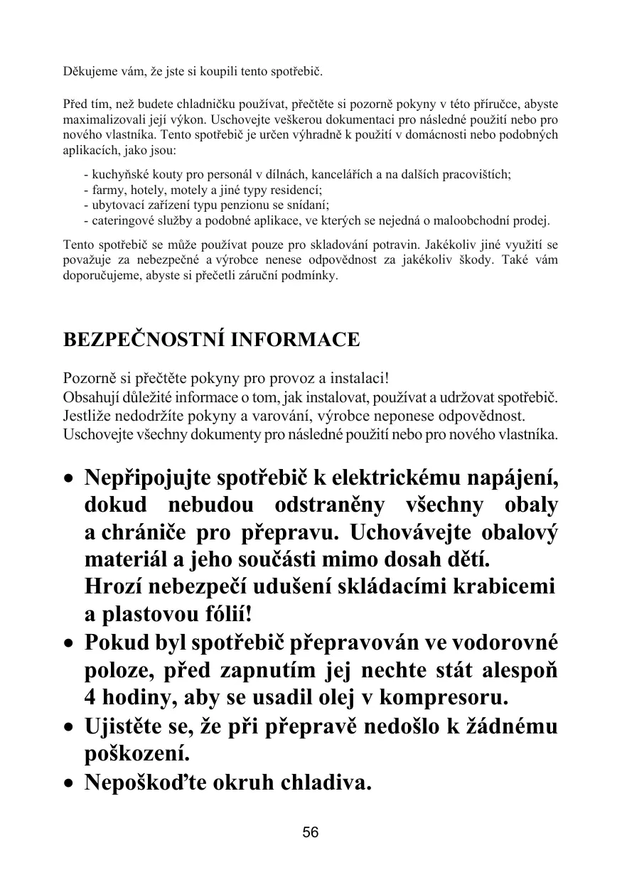 - dans les exploitations agricoles, pour la clientèle des hôtels, motels et autres environnements de type résidentiel - dans les hébergements Bed and Breakfast (B & B) - pour les services de restauration et des applications similaires non destinées à une vente au détail. Cet appareil doit être utilisé uniquement à des fins de conservation d'aliments, toute autre utilisation est considérée comme dangereuse et le fabricant ne sera pas responsable de toute omission. De plus, il est recommandé de prendre note des conditions de garantie.