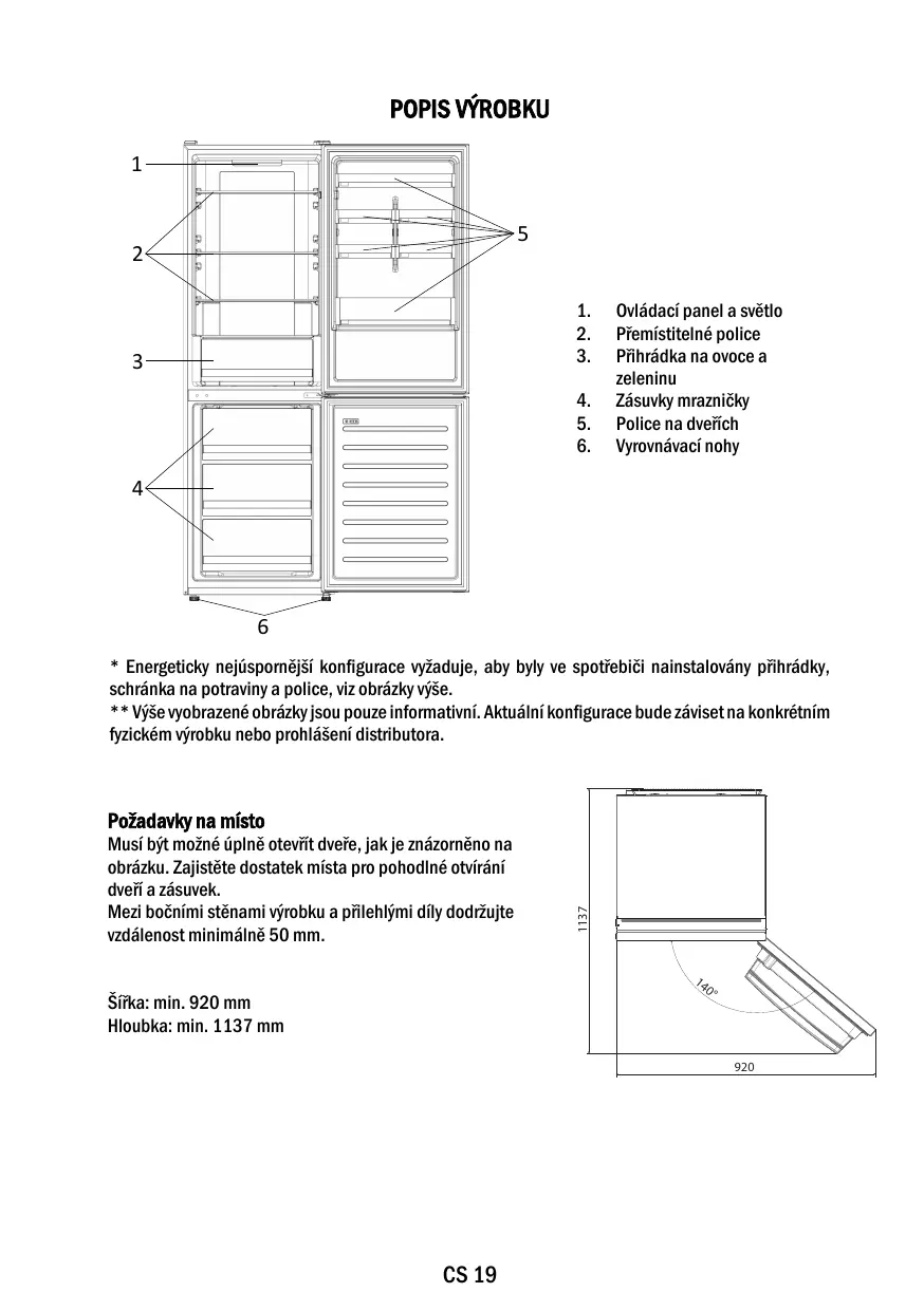 6 * Energeticky nejúspornější konfigurace vyžaduje, aby byly ve spotřebiči nainstalovány přihrádky, schránka na potraviny a police, viz obrázky výše. ** Výše vyobrazené obrázky jsou pouze informativní. Aktuální konfigurace bude záviset na konkrétním fyzickém výrobku nebo prohlášení distributora.