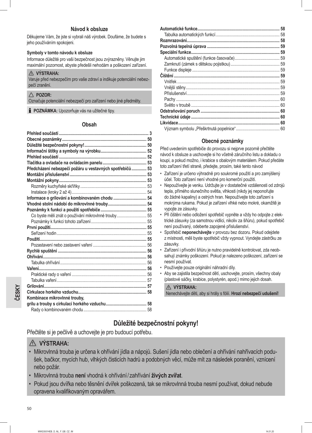 - Kombinace mikrovlnné trouby, grilu a trouby s cirkulací horkého vzduchu p. 58