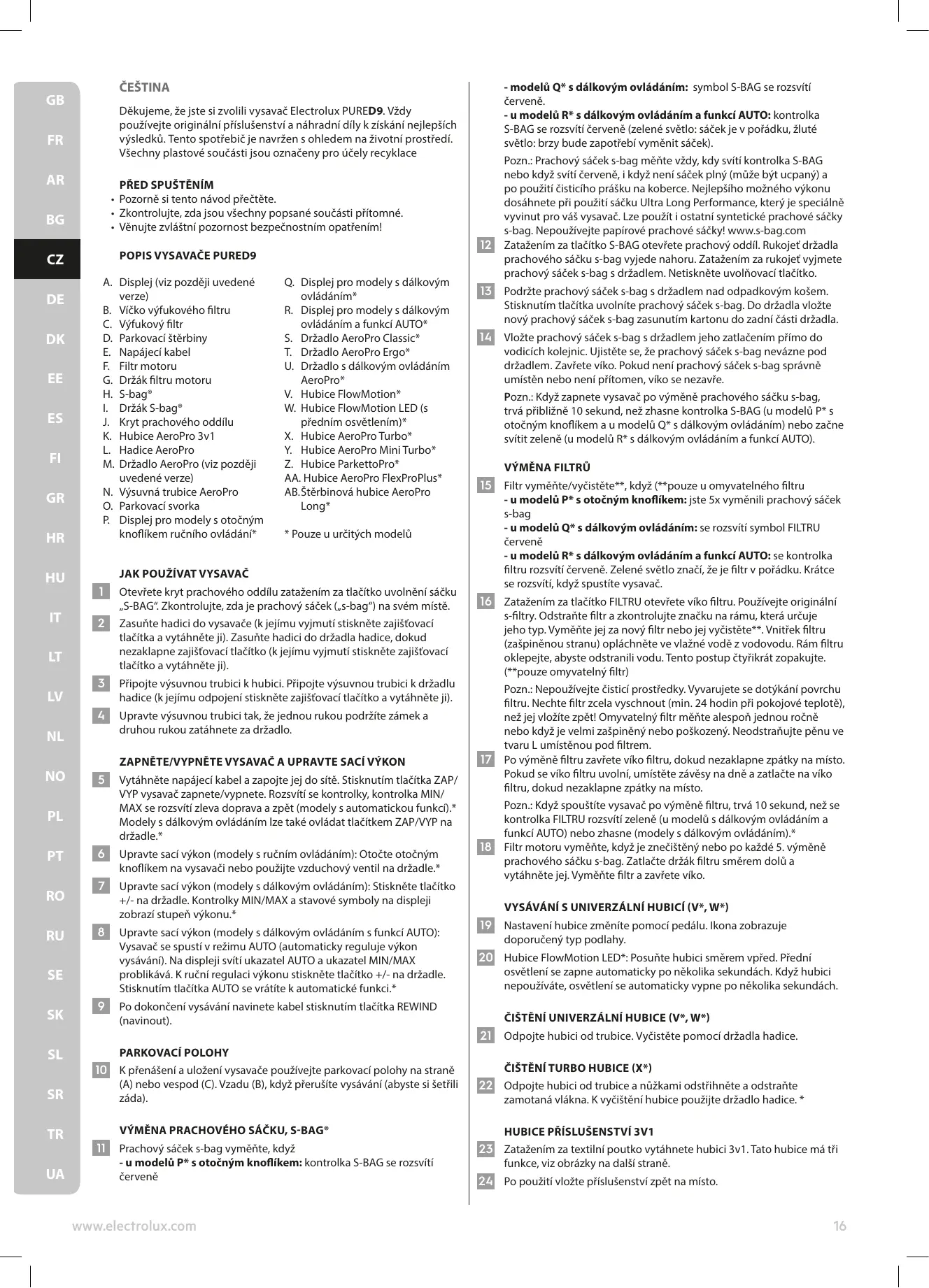 Děkujeme, že jste si zvolili vysavač Electrolux PURED9. Vždy používejte originální příslušenství a náhradní díly k získání nejlepších výsledků. Tento spotřebič je navržen s ohledem na životní prostředí. Všechny plastové součásti jsou označeny pro účely recyklace