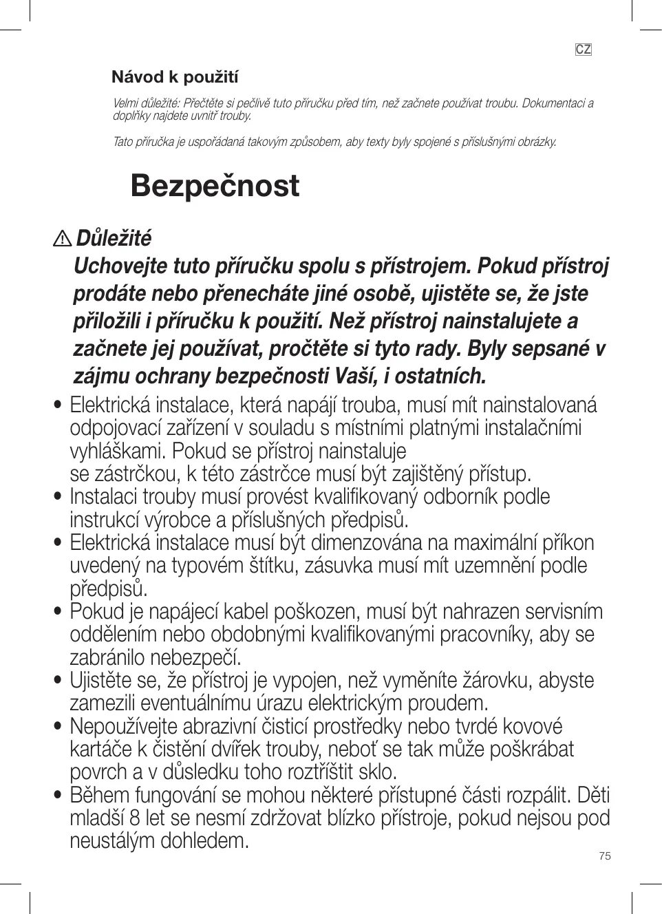 • Dieses Gerät kann von Kindern ab 8 Jahren und Personen verwendet mit verminderten physischen, sensoriellen oder geistigen Fähigkeiten oder mangelnder Erfahrung und Kenntnis benutzt werden, sofern sie eine angemessene Feststellung des Modells L’installation du four doit être confiée à un installateur agréé qui suivra les instructions et les schémas du fabricant. L’installation électrique doit être dimensionnée à la puissance maximale indiquée sur la plaque signalétique et la prise électrique équipée d’une mise à la terre réglementaire. Si le câble électrique est endommagé, il doit être remplacé par un technicien du service après-vente ou toute autre personne qualifiée afin d’éviter tout danger. S’assurer que l’appareil est débranché avant de remplacer la lampe pour éviter un éventuel choc électrique. Ne pas utiliser de produits de nettoyage abrasifs ou d’éponges métalliques dures pour nettoyer la porte du four, car vous risquer de la rayer et de provoquer la cassure en petits morceaux du verre. Pendant le fonctionnement de l’appareil, certaines parties accessibles peuvent devenir chaudes. Veiller à éloigner les enfants de moins de 8 19