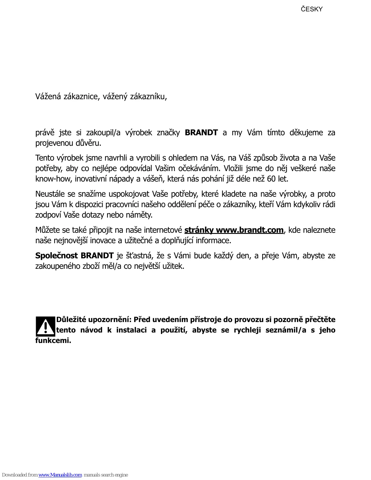 Dans un souci permanent de toujours mieux satisfaire vos exigences, notre service consommateurs est à votre disposition et à votre écoute pour répondre à toutes vos questions ou suggestions. Connectez-vous aussi sur notre site www.brandt.com où vous trouverez nos dernières innovations, ainsi que des informations utiles et complémentaires. BRANDT est heureux de vous accompagner au quotidien et vous souhaite de profiter pleinement de votre achat.