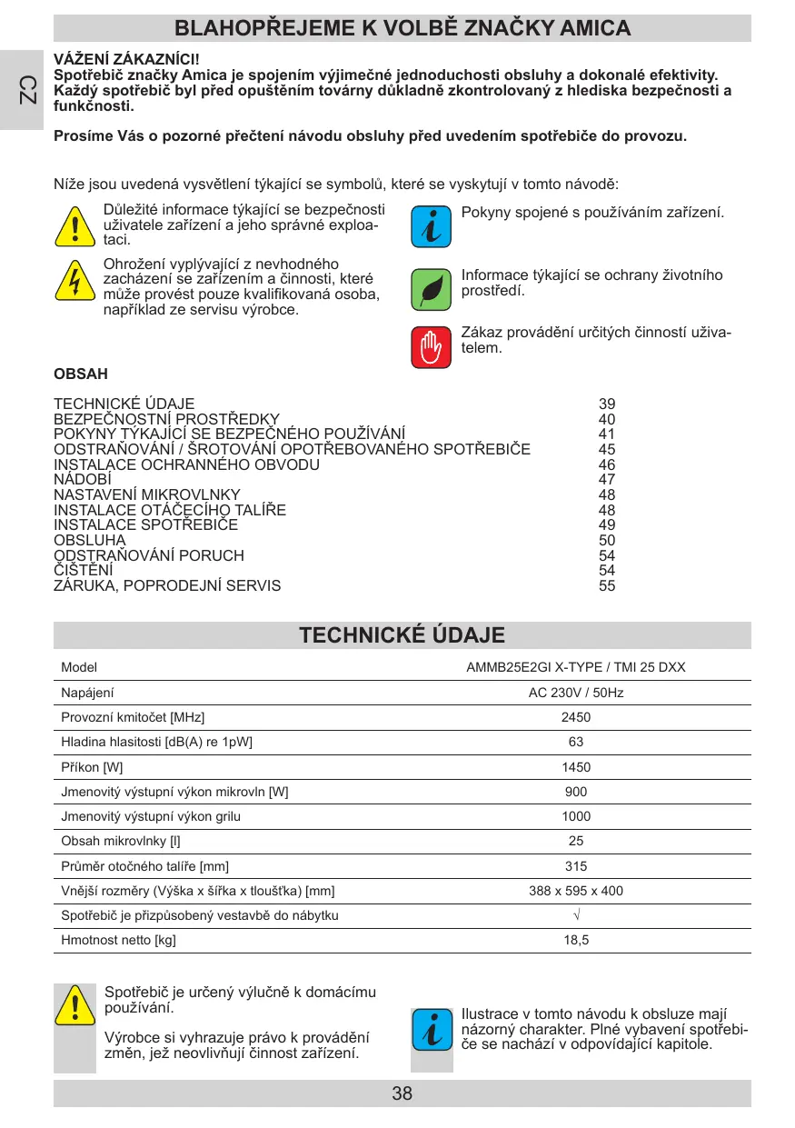 NÁVOD K OBSLUZE AMMB25E2SGW AMICA